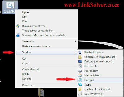 - Now Right click on LinkSolver.bat and Go to Send to option and then choose Notepad.